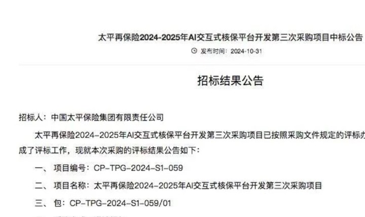 近日,中科金财中标太平再保险2024-2025年AI交互式核保平台开发第三次采购项目,结合创新科技应用,开发面向国内及海外的AI交互式核保平台,建立知识库,覆盖多种疾病,实现智能问答式交互,提升核保人员和客户的效率。